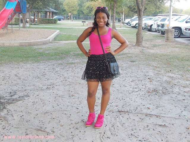 | Tank: Wal-Mart Skirt: Justice (old) Sneaker Wedges: Go Jane Purse: Forever 21 |